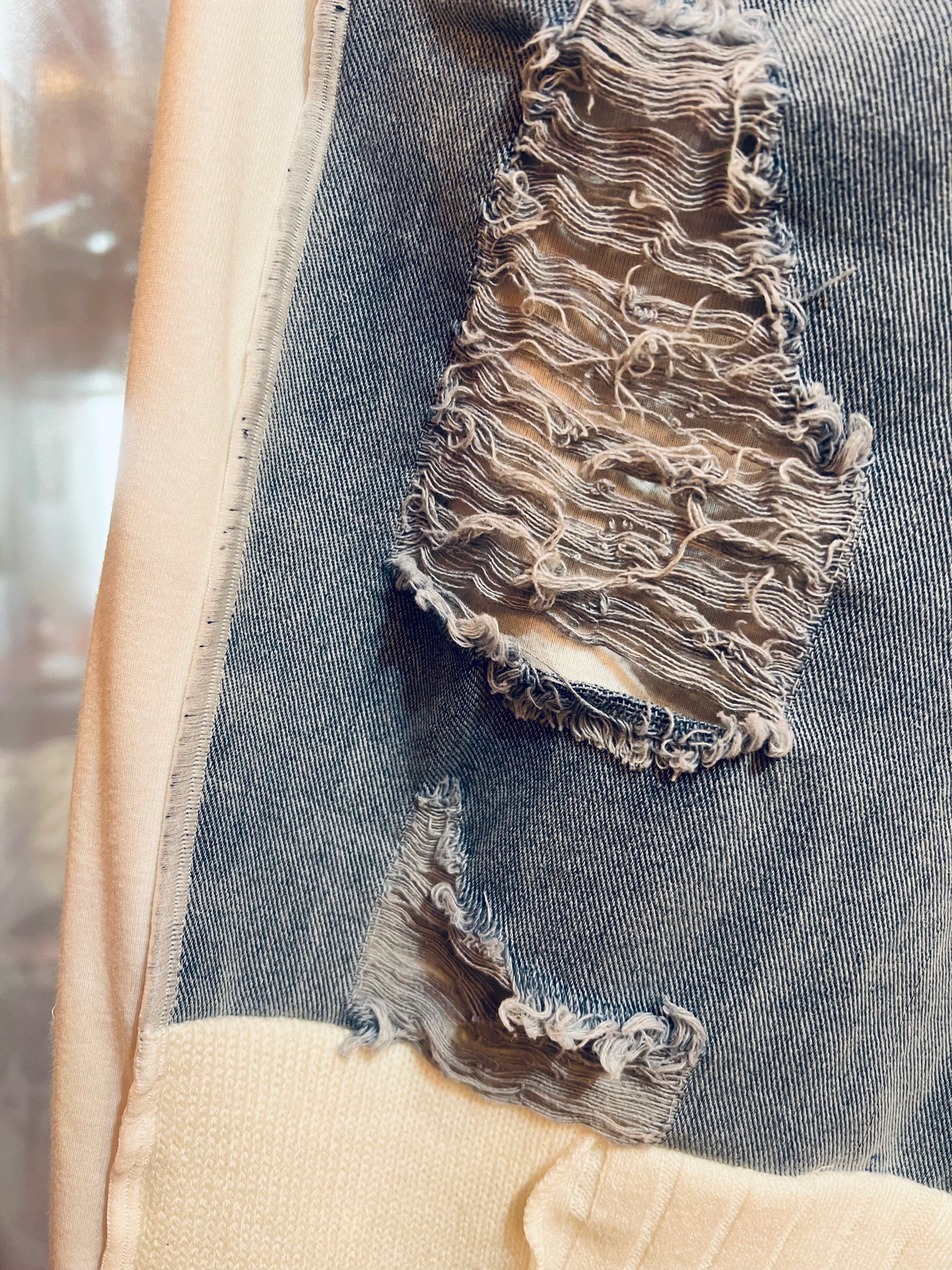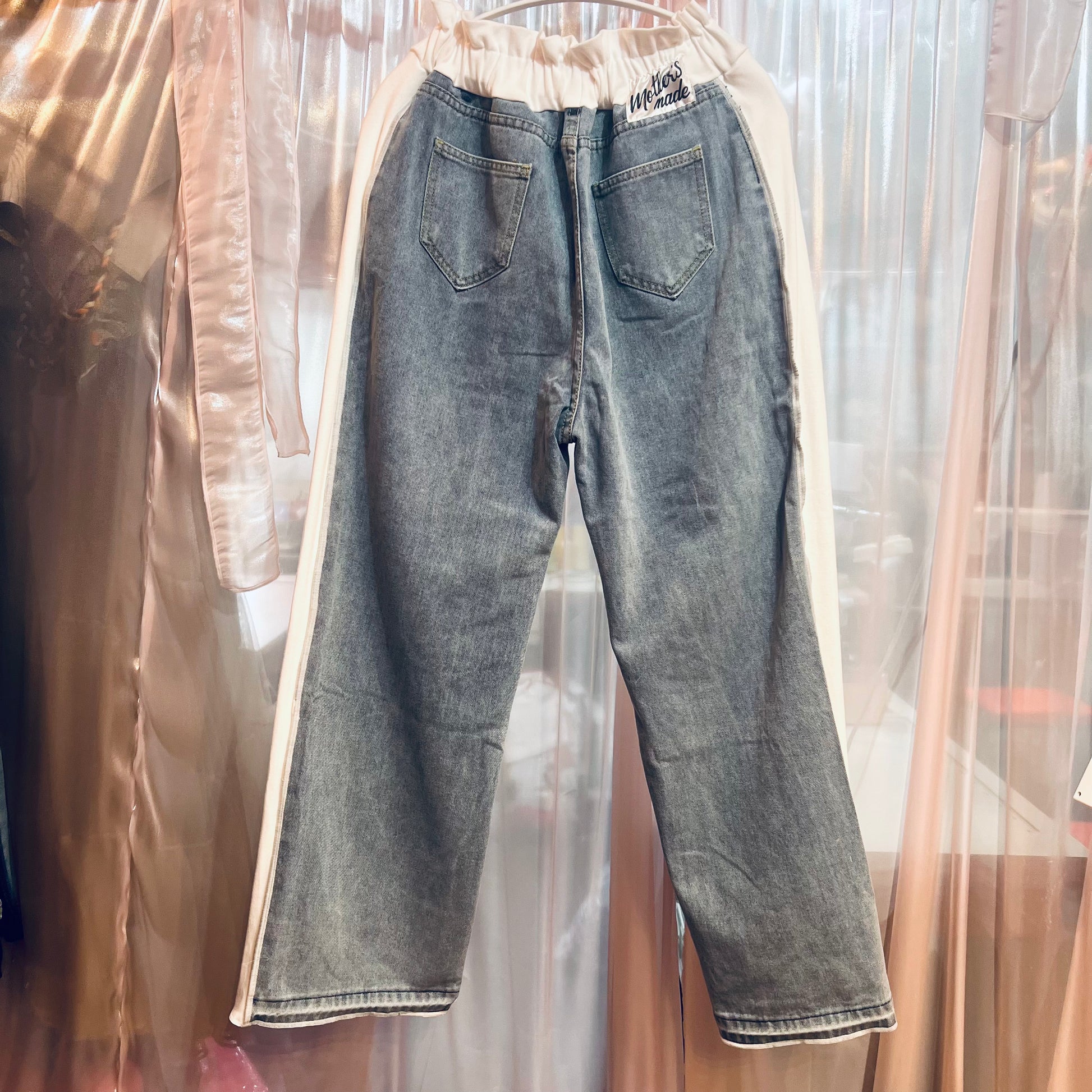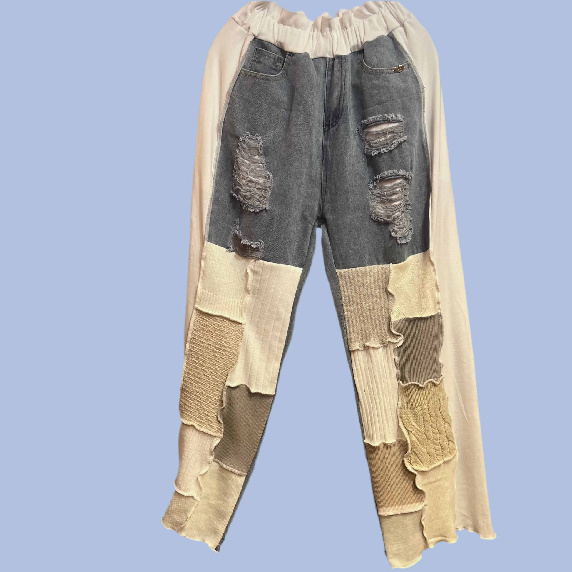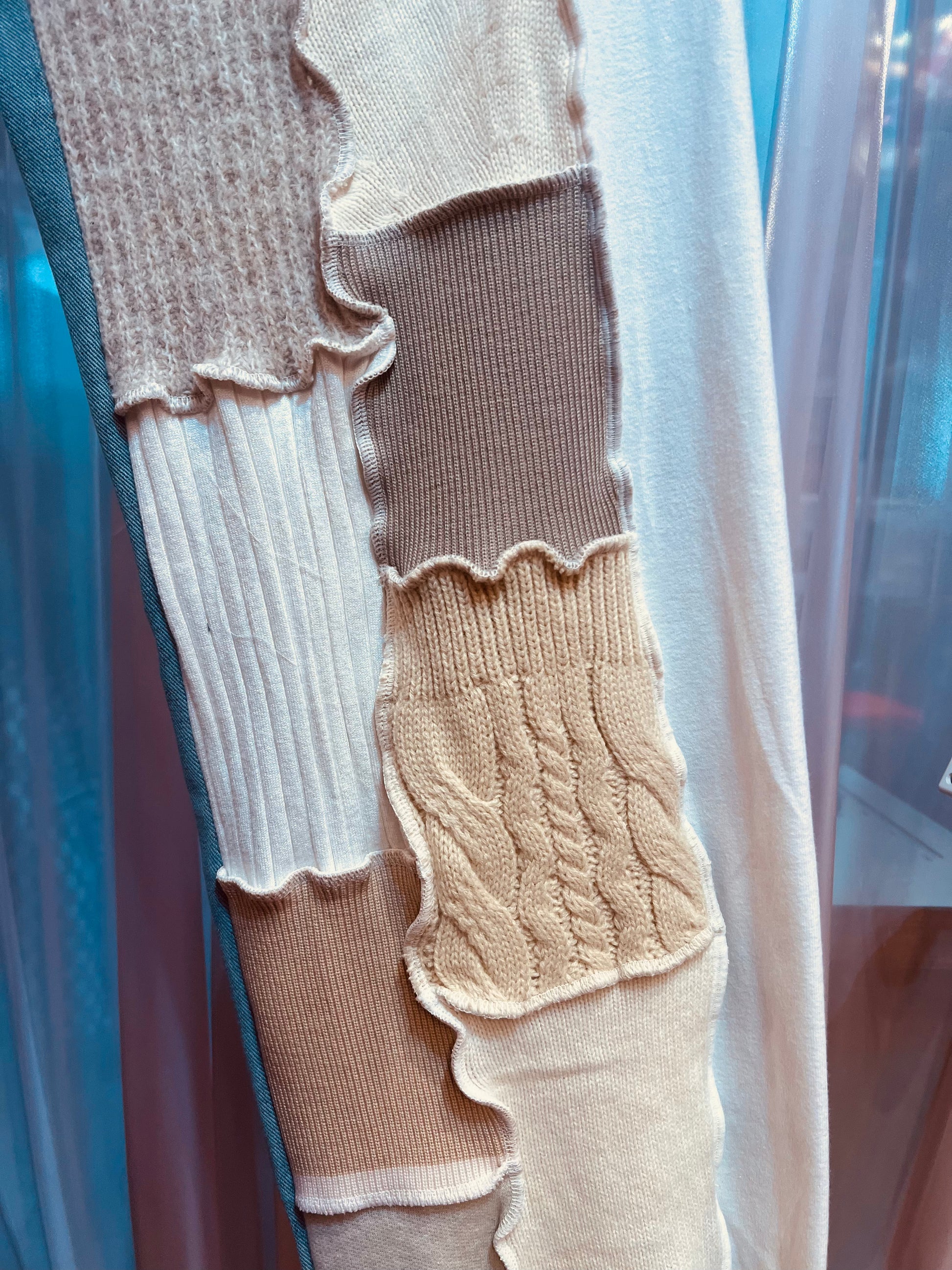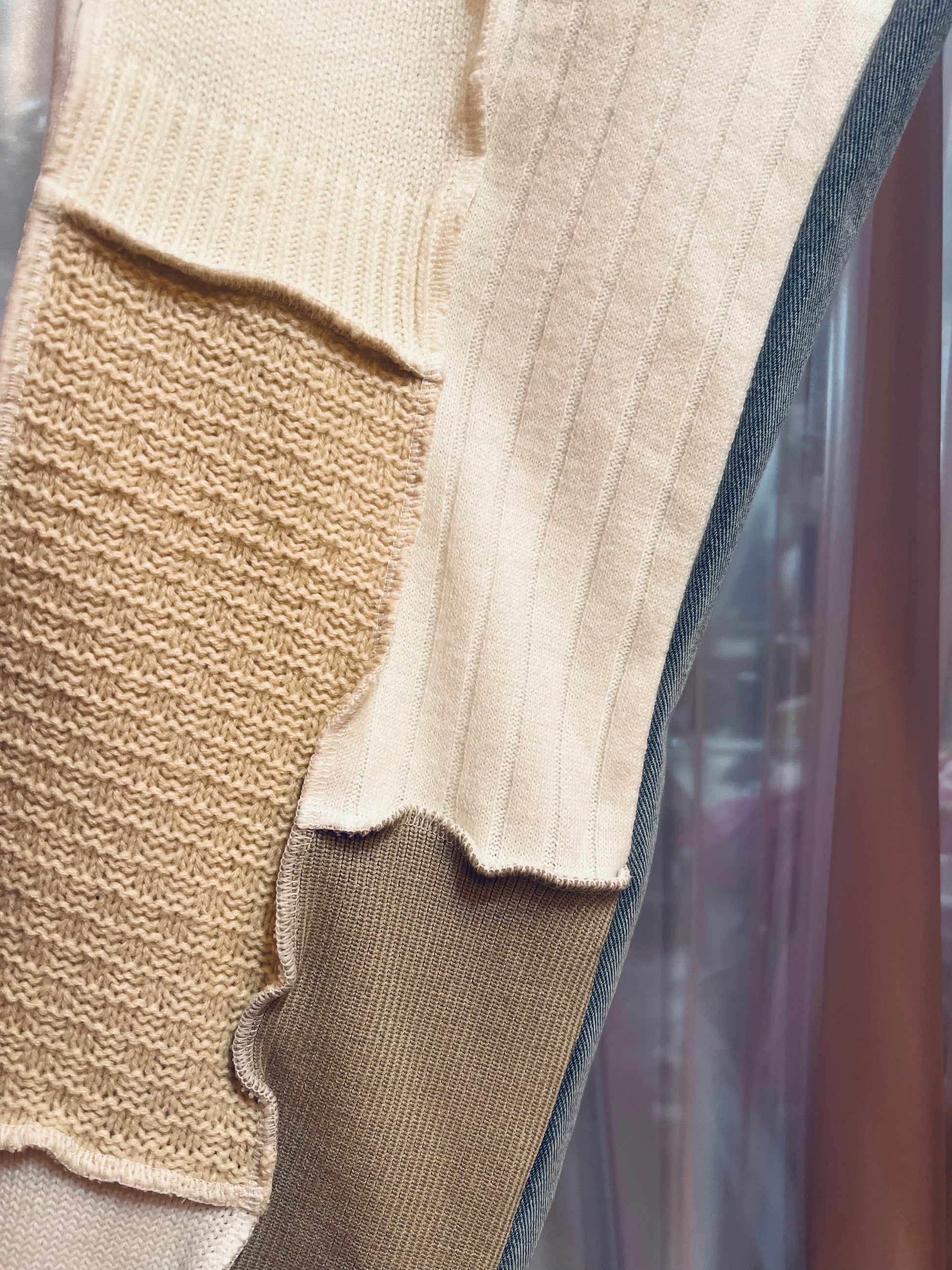 ニットパッチワークデニム (白)